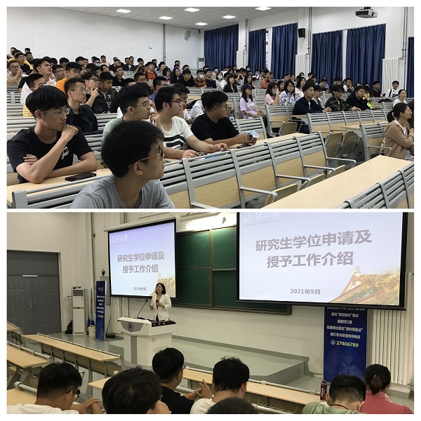 随后,为帮助新生了解学位申请及授予相关方面的工作,规范研究生学术研究和活动,关静教授为同学们梳理了研究生学位申请及授予的工作流程,介绍了教育部和学校关于处理学术不端行为的相关文件内容,通过多起真实案例警醒学生们,在科研过程中要遵行诚信,弘扬科学精神,明德博学、勤奋求实、脚踏实地、敦品励学、追求卓越,与学院缘分相聚、并肩前行,仰望星空,携手未来。