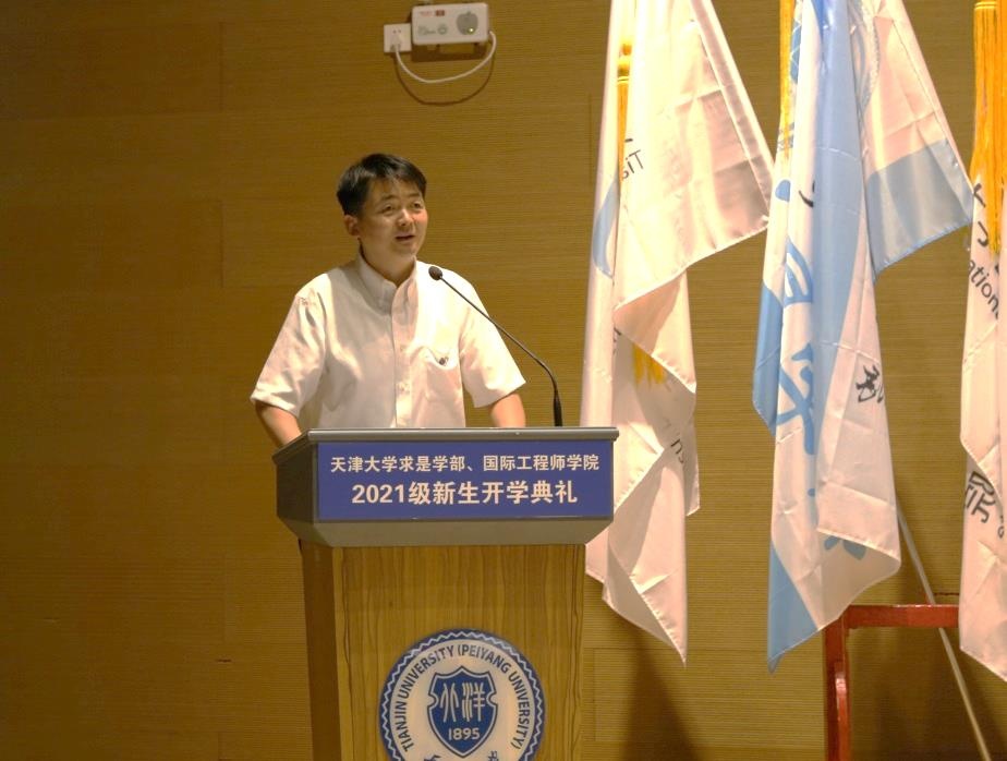 最后,巩金龙副校长向全体新生致词。他首先对今年成功进入求是学部和国际工程师学院的优秀学子表示衷心祝贺与热烈欢迎。他指出,求是学部积极探索工程创新人才培养模式,培养了一大批工程创新人才、科技创新人才、企业领军人才和基础学科拔尖人才;国际工程师学院对标国际工程师认证标准,探索法国工程教育的本土化,取得了不斐的成绩。