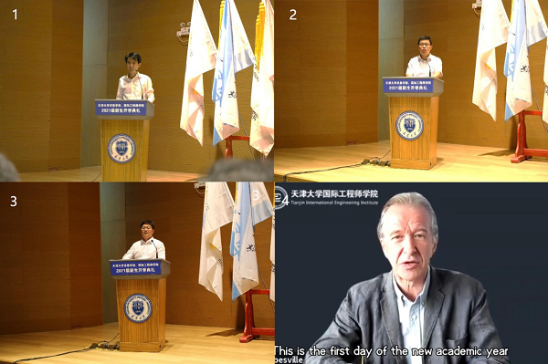 以青春之昂扬,向世界表达中国智慧。国际工程师学院法方院长Philippe Gourbesville教授通过视频对全体新生的到来表达了欢迎与祝贺,并期望同学们充分利用中法教育合作,开阔眼界与思维,提高解决问题的能力,积极参与企业实践,将学科间专业知识融会贯通,最终成为一名具备国际视野的优秀工程师。