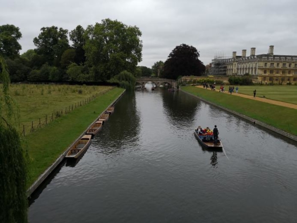 如果说牛津是城市中有大学,那剑桥就是大学中有城市。学生们三五成群地坐在河边的草地上高谈阔论,船夫划船在剑河缓缓驶过,依偎的情侣在河畔的咖啡馆亲密交谈,成群的鸭子在学院里漫无目的的踱步,国王街的圣体钟不时的发出金属碰撞般的声响,告诫人们珍惜时间,把握当下。