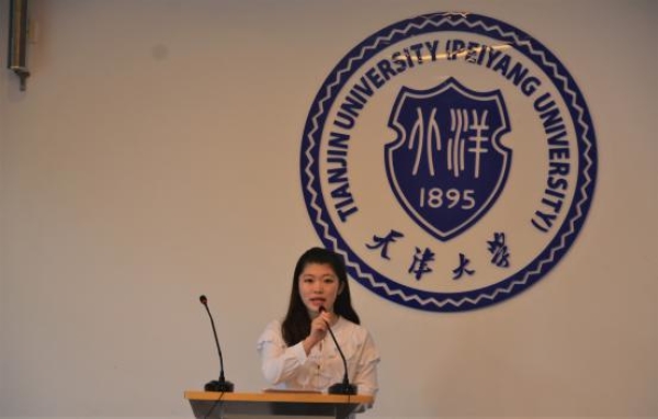 学院新生代表雷仪婧用流利的英文代表学院全体2018级新生发言。她在发言中表示出三点希望“积极参与课程研究与学习、始终保持谦虚的心,向周围人请教、主动抓住并珍惜每一次实习的机会”与在座的同学们共勉。