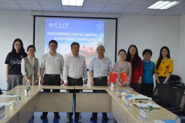 (通讯员刘英彤)2018年4月20日,南京理工大学中法工程师学院常务副院长杨森、副院长王浩平、专业负责人姚云霞及教务员祝笑旋一行赴天津大学国际工程师学院走访调研。天津大学国际工程师学院党委书记单小麟于国际工程师学院楼211会议室会见南京理工大学中法工程师学院一行。我院辅导员陈维;教务员王文杰、李媛;外事专员刘宗欣;宣传员刘英彤及企业俱乐部专员刘洋进行接待并出席座谈会。