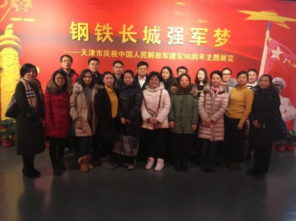 在中国人民解放军建军90年之际,全体支部党员一同参观了《钢铁长城强军梦──天津市庆祝中国人民解放军建军90周年主题展览》,该展览重现了中国人民解放军英勇奋战的艰难场景以及取得最终胜利的宏伟场面。充分展现了党领导人民军队走过的光辉历程和取得的伟大成就。