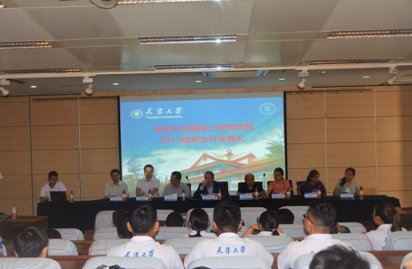 8月24日下午,国际工程师学院17级新生开学典礼于天津大学卫津路校区26楼B103报告厅顺利举行。国际工程师学院法方院长Philippe Gourbesville、学院党委书记单小麟、党委副书记张天莹、教学副院长喻梅、行政副院长王玮、法国综合理工联盟欧盟Erasmus+项目主管尹娜、中法双方教师代表、学院办公管理办公室全体教师及17级全体新生出席了本次开学典礼。