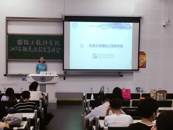 2017年9月13日晚6:00,国际工程师学院于天津大学北洋园校区44教A-111室召开2018年推免生招生宣讲会。国际工程师学院教学副院长喻梅、计算机专业负责人王建荣、建筑与土木工程专业年级组长周婷、刘魁星以及国际工程师学院教务组教师们出席本次宣讲会。