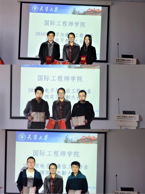 首先,党委副书记张天莹对我院2016级电子与通信工程专业学生在本次“蓝领实习”成绩优秀的同学进行了表彰并颁发荣誉书。刑林林、王永镇两位同学荣获一等奖;张家赫、李天宇两位同学荣获二等奖;刘宁、管岱两位同学获三等奖。