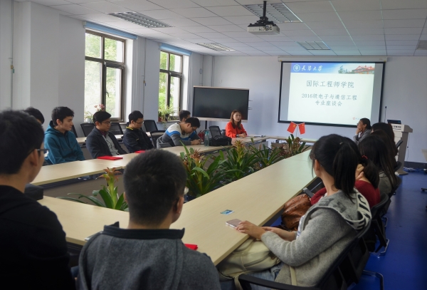 (通讯员 刘英彤)2017年10月11日,国际工程师学院召开2016级电子与通信工程专业座谈会。求是学部党委副书记张天莹及学院辅导员陈维出席会议并与学院2016级电子与通信工程专业学生一同座谈。