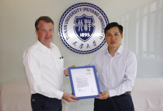 (通讯员 刘英彤)2017年8月21日下午,法国尼斯综合理工学院校长Philippe GOURBESVILLE于会议楼贵宾室向钟登华校长交接天津大学国际工程师学院通过法国工程师职衔委员会(CTI)最高等级的认证证书。天津大学国际工程师学院党委书记单小麟、副院长王玮、法国综合理工联盟欧盟Erasmus+项目主管尹娜以及中法双方教师代表一同出席。
