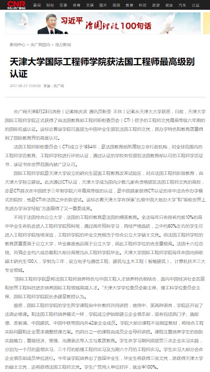 法国工程师职衔委员会(CTI)成立于1934年,是法国教育部所属独立非行政机构,对全球范围内的工程师学历教育、工程师学校进行评估认证,通过认证的学校有权颁发法国教育部认可的工程师学历证书,该证书在世界范围内被广泛认可。