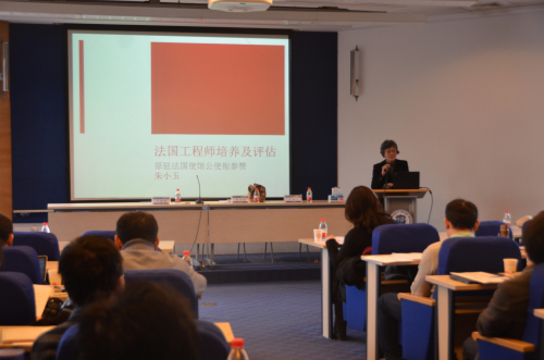上午10时,培训会正式开始。朱小玉从法国工程师培养体系、工程师职衔委员会简介、法国工程师教育的国际影响、CTI对海外机构的评估及相关规定四个方面进行讲解。她表示法国工程师教育是一种独特的精英培养模式,克服了传统综合性大学培养的学生理论脱离实际的弊端,拥有严格的准入机制。此外,朱小玉结合国际工程师学院的实际情况,就海外机构首次认证的问题展开了详细的说明,并着重强调了实地考察的诸多要点。