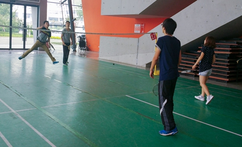 比赛一开始就进入了残酷的淘汰赛,竞争异常激烈。赛场上,“八仙过海,各显神通”,选手们纷纷拿出看家本领,一决高低,各路球技展现得淋漓尽致。赛场下,啦啦队的喝彩声、加油声、欢呼声此起彼伏。比赛中,选手们都表现出顽强拼搏的竞技精神,即使落后,仍每球必争,决不轻易放弃,同时也发挥了团队的协作精神。同学们打得酣畅淋漓,啦啦队则为自己支持的一方捏了一把汗。经过几轮激烈角逐,唐伟和许茹取得了最后的胜利,赢得了属于他们的掌声。
