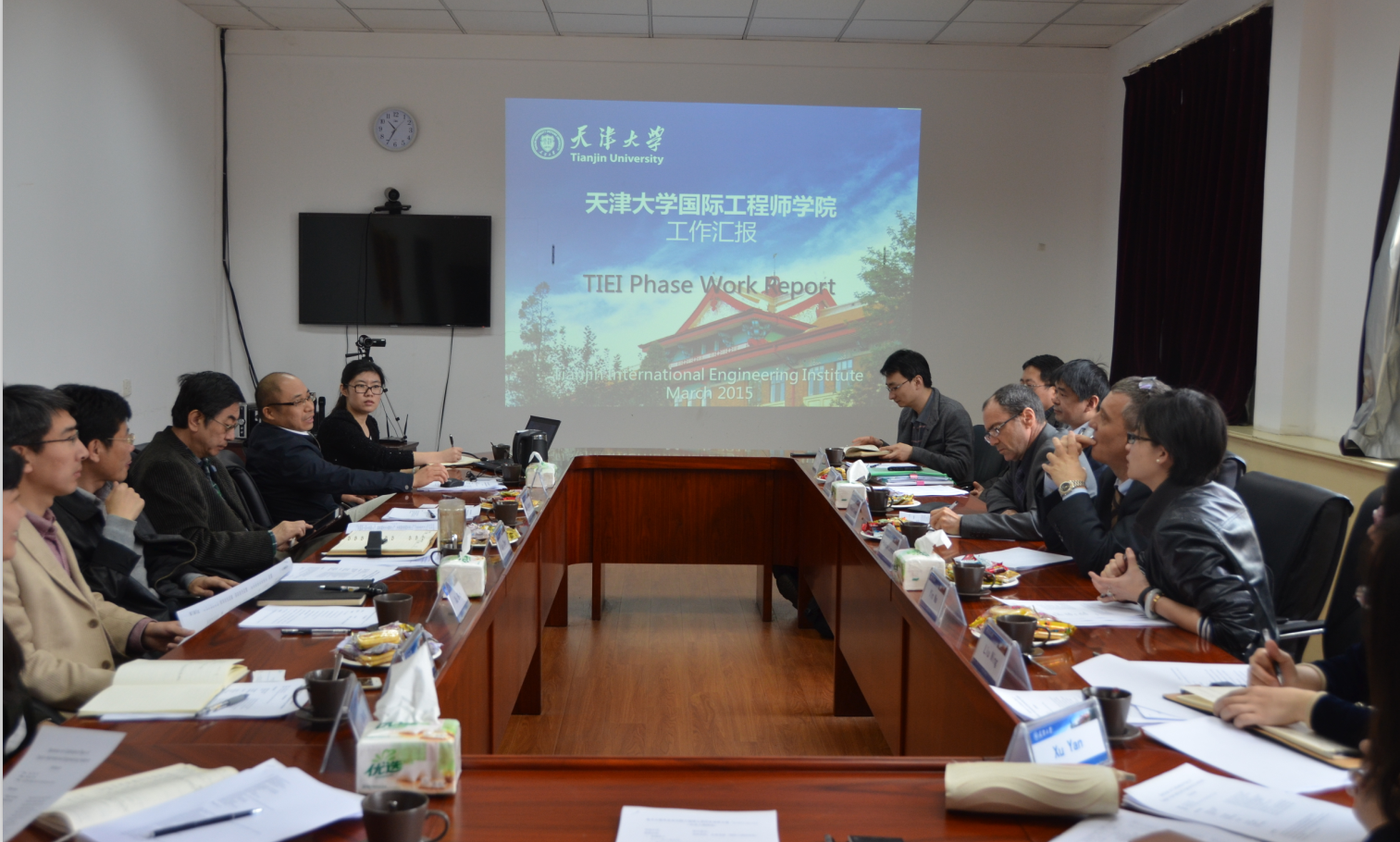 随后,天津大学电子信息工程学院院长、中法班电子信息方向课程负责人马建国介绍目前电子信息方向培养方案及课程安排,并就学生进实验室等具体事宜与法方代表进行了探讨。天津大学计算机专业教师、中法班计算机专业课程负责人王建荣就计算机方向课程设置提出问题并与法方代表探讨。天津大学建筑学院副院长、中法班智能建筑专业课程负责人刘刚详细介绍了智能建筑专业三个研究方向。单书记就国际工程师学院CTI认证自评报告撰写过程中遇到的问题向法方代表咨询,法方代表结合CTI认证要求和尼斯理工的申请经验,就提问予以回答,双方据此展开讨论。