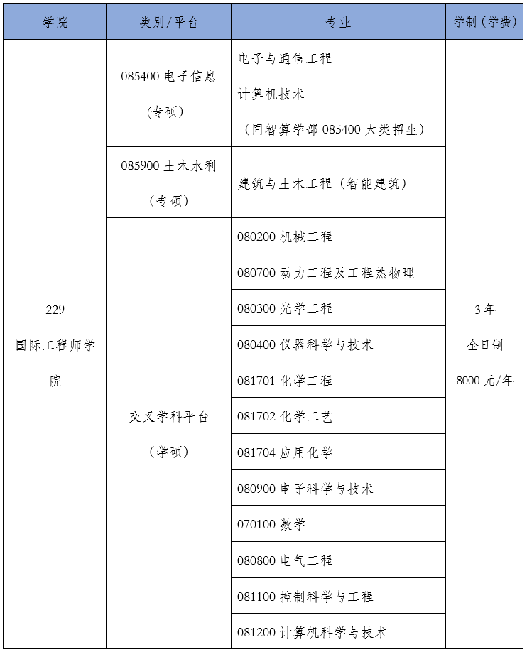 附件1:国际工程师学院招生专业