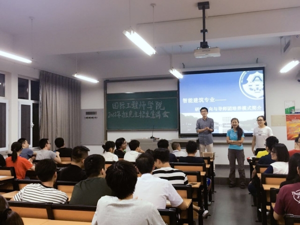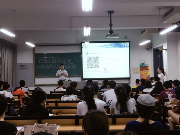(通讯员 刘英彤)2017年9月14日晚6:00,国际工程师学院于天津大学卫津路校区26教B-415室召开2018年推免生招生宣讲会。国际工程师学院教学副院长喻梅、建筑与土木工程专业负责人刘刚、电子与通信工程专业负责人苏育挺以及国际工程师学院教务组教师们出席本次宣讲会,宣讲会现场场面十分火热。