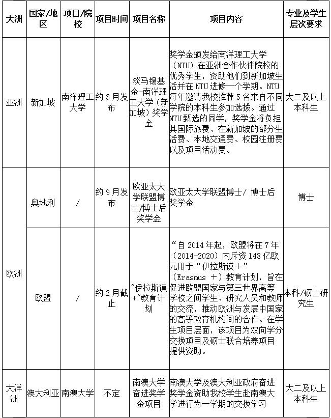 该奖学金支持的项目应为中欧高校间正式的校际交流项目,两校间已就该项目签署校际交流协议,欧洲高校承认其学生在中方高校学习结束后所得学分,其学习时间不少于3个月。资助标准为2500元/人/月。该项目于每年4月份由国际处牵头向教育部国际司申报。2015/2016学年获批项目名录 2016-2017学年获批项目名录