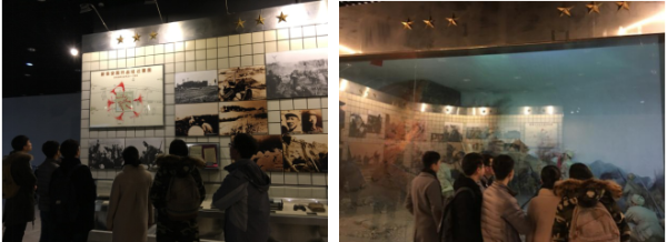 随后,我们怀着崇敬的心情,踱着缓缓的脚步,参观了平津战役纪念馆序厅、战役决策厅、战役实施厅等展厅及“两学一做”专题展厅。每一段文字、每一幅照片、每一件展品和每一个场景,全面且真实地展现了平津战役从开始到胜利结束的光辉历程,颂扬着无数浴血奋战的革命战士的奋斗和中国人民解放军的丰功伟绩。其展品中有很多手稿,支部成员在繁体字和简体字的切换中学习了革命家在平津战役的方针部署中高瞻远瞩、审时度势的英明决策;展品中还有当时革命家的生活用品,从简陋和破旧中展现了当时的艰苦生活,更体现了革命年代革命先辈艰苦奋斗的伟大精神。