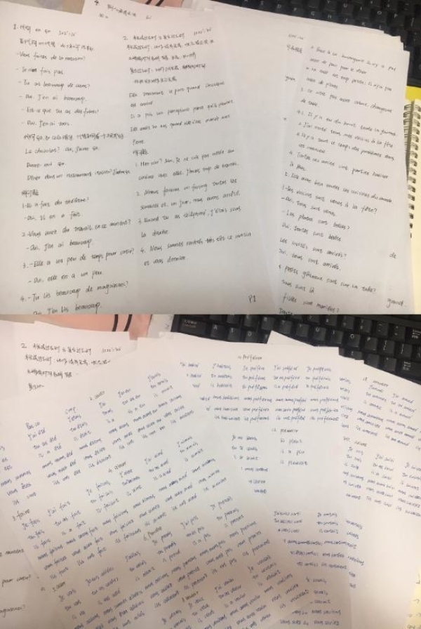 (图为邢琳同学整理法语知识笔记)